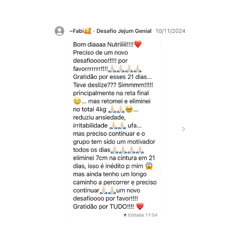 O Jejum Genial é uma estratégia que une jejum e meu método de emagrecimento onde o foco é sentir saciedade. Neste desafio você receberá: